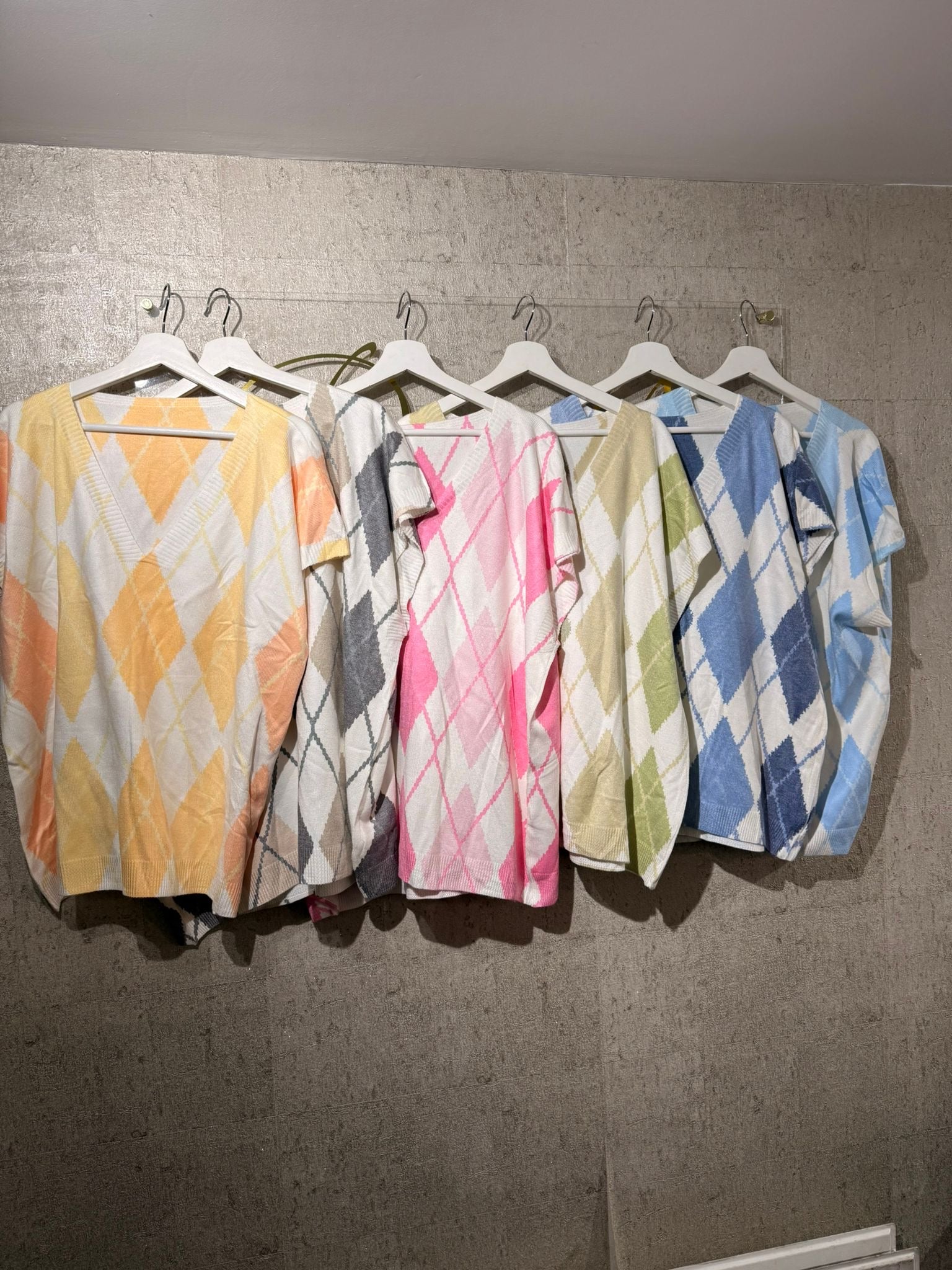 A fresh twist on a classic, this lightweight knit top features a timeless argyle pattern in soft pastel tones. Designed with a flattering V-neckline, relaxed fit, and breathable fabric, it’s perfect for effortless everyday styling - wear it with denim, trousers, or layered under a jacket.