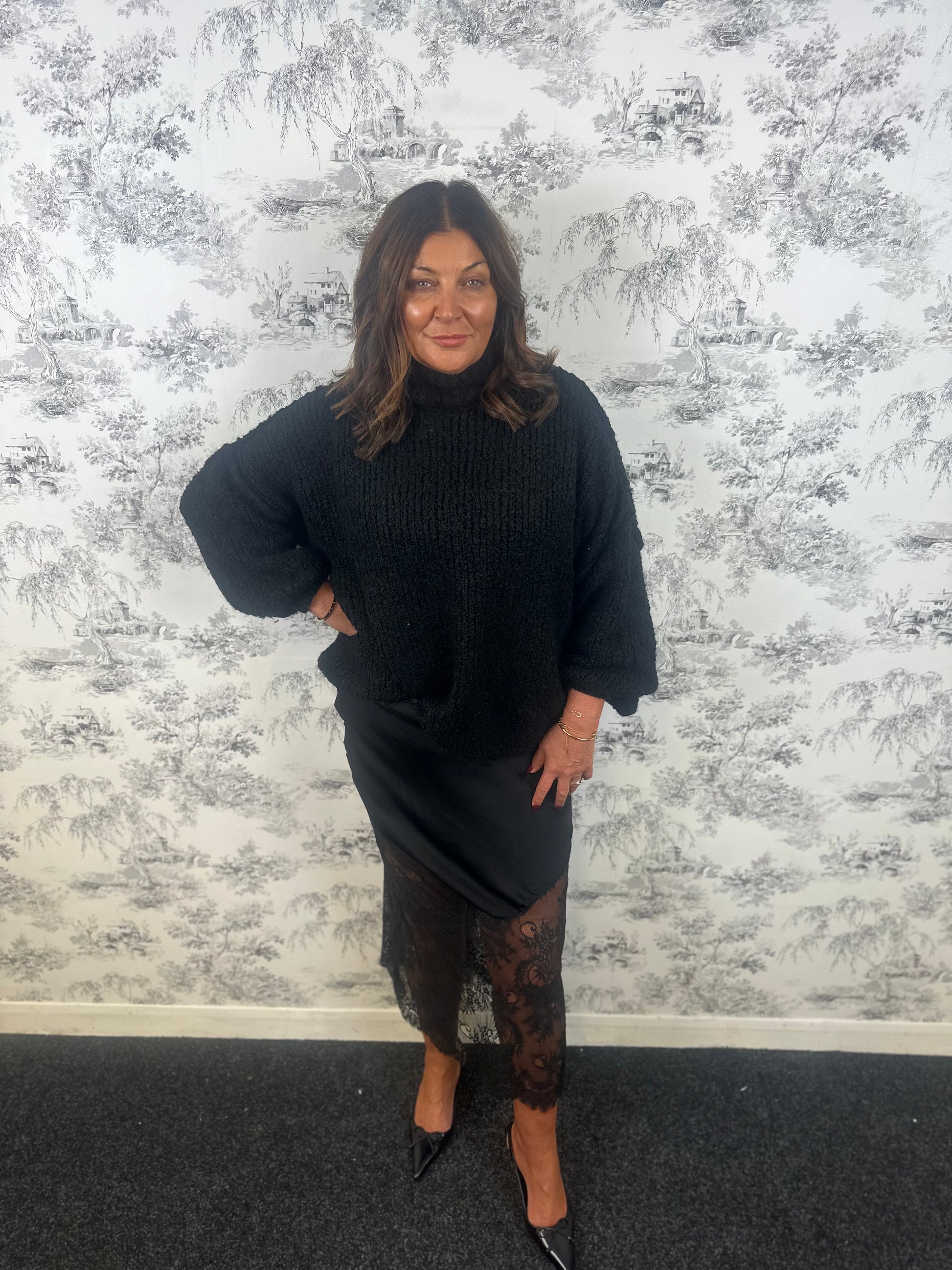 Elevate your wardrobe with our JEN SKIRT - a luxurious satin skirt with delicate lace front detailing. Designed to fit up to a size 16, this skirt effortlessly combines comfort and style for all-day wear. Make a statement and feel glamorous in our JEN SKIRT.