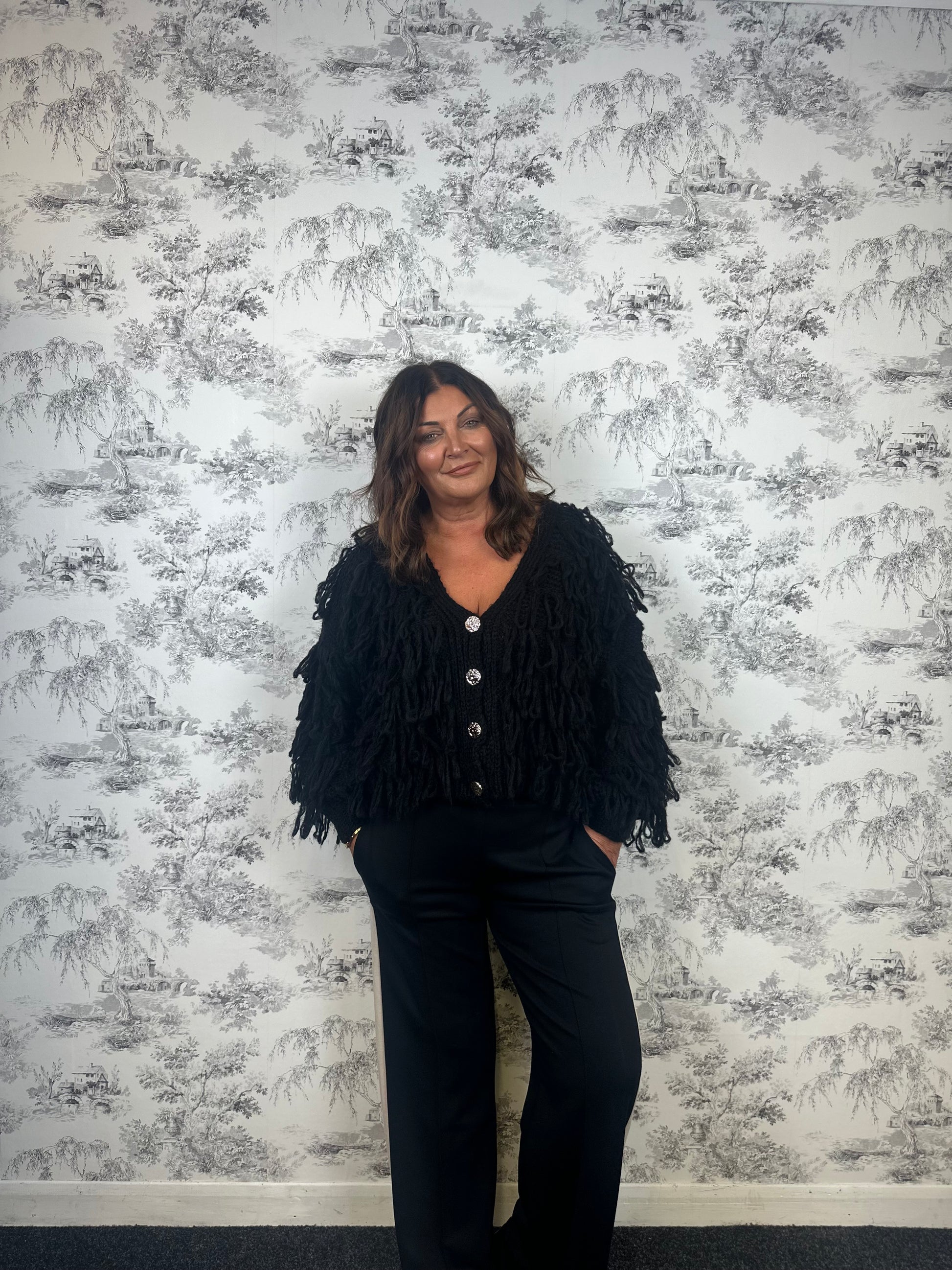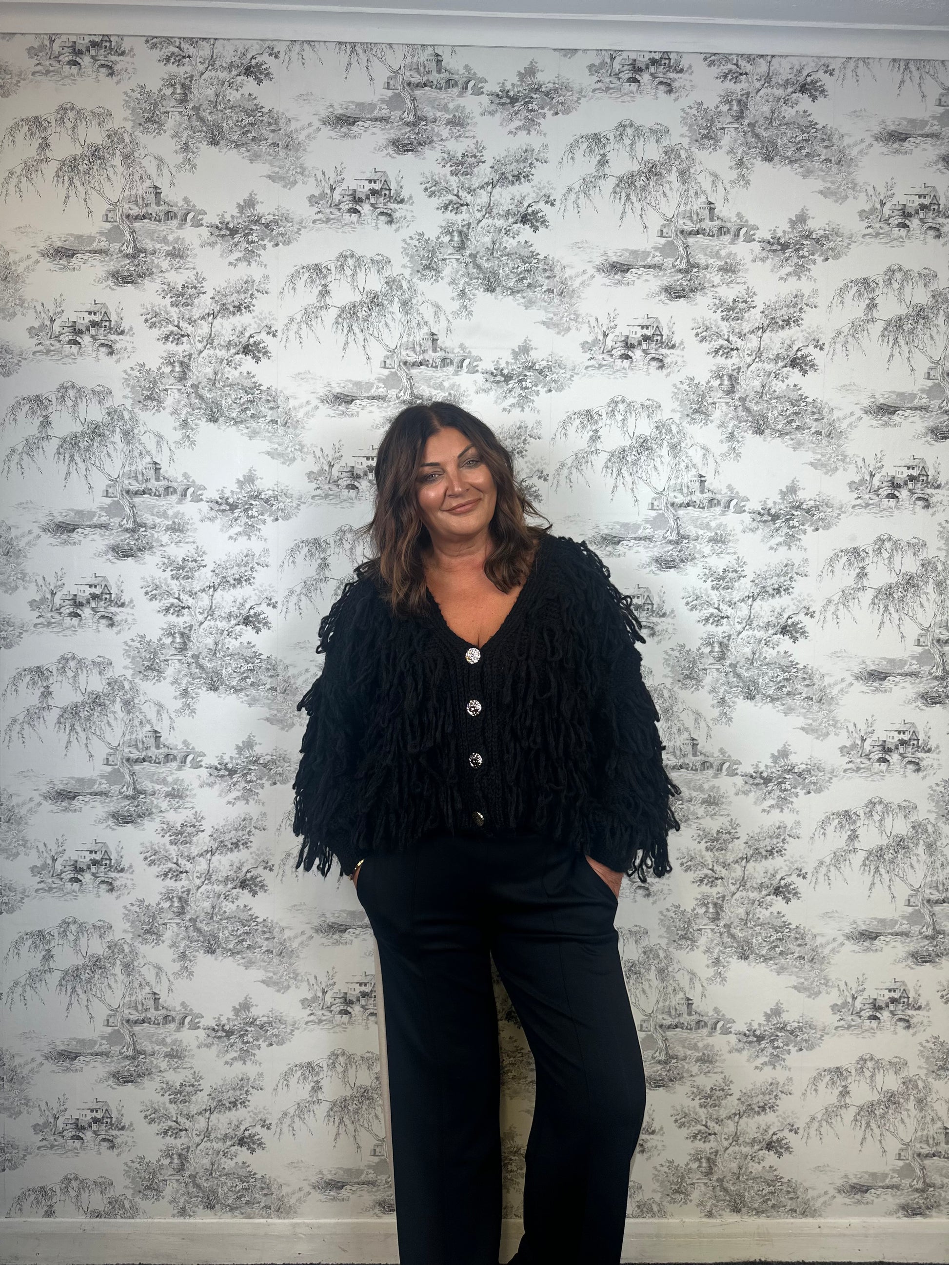The LULU KNIT features knit material with loop detail accented by gold buttons. Providing a touch of elegance and texture, this product is crafted with quality and style in mind. Elevate your wardrobe with this timeless and versatile piece. One Size.