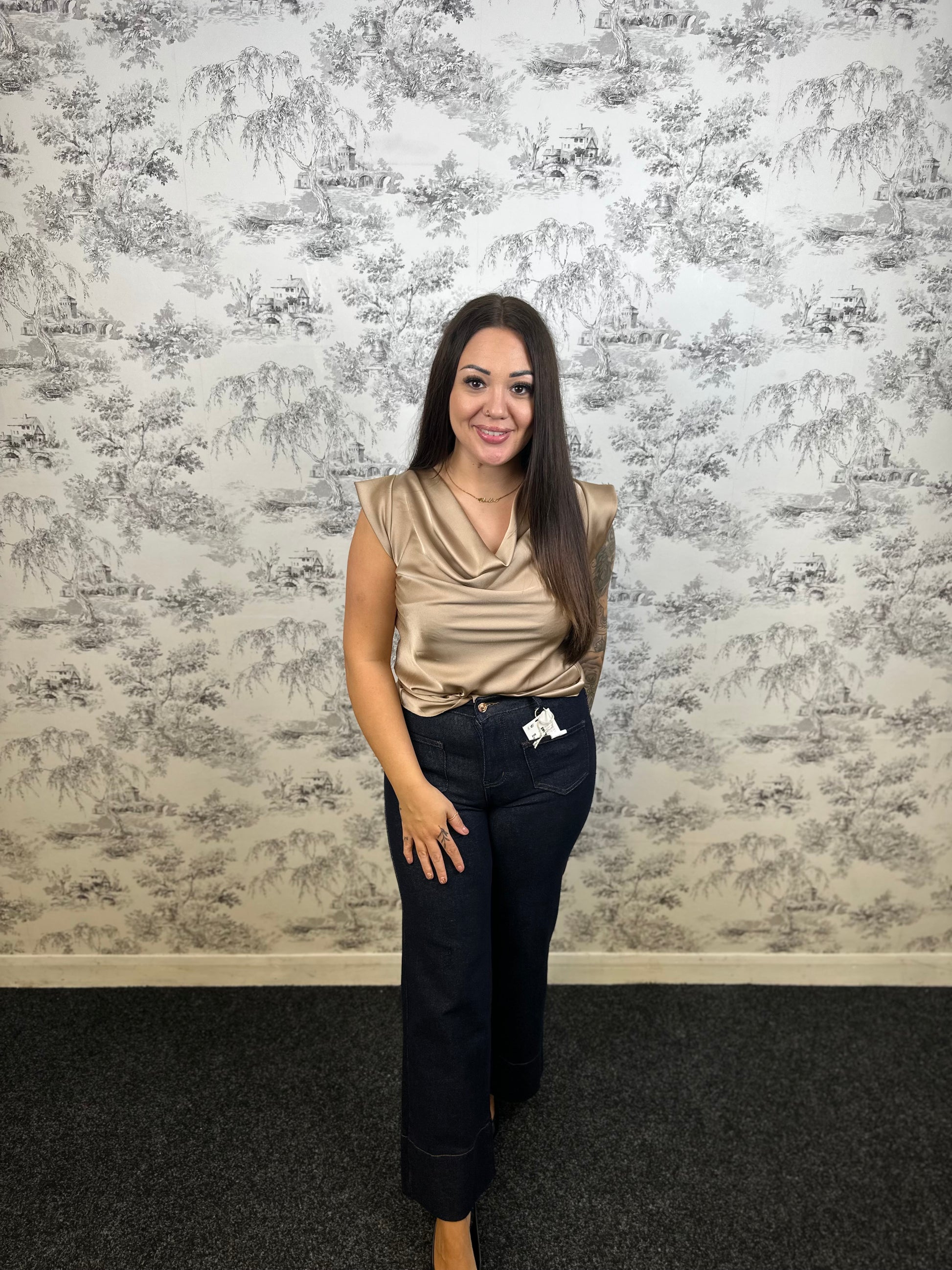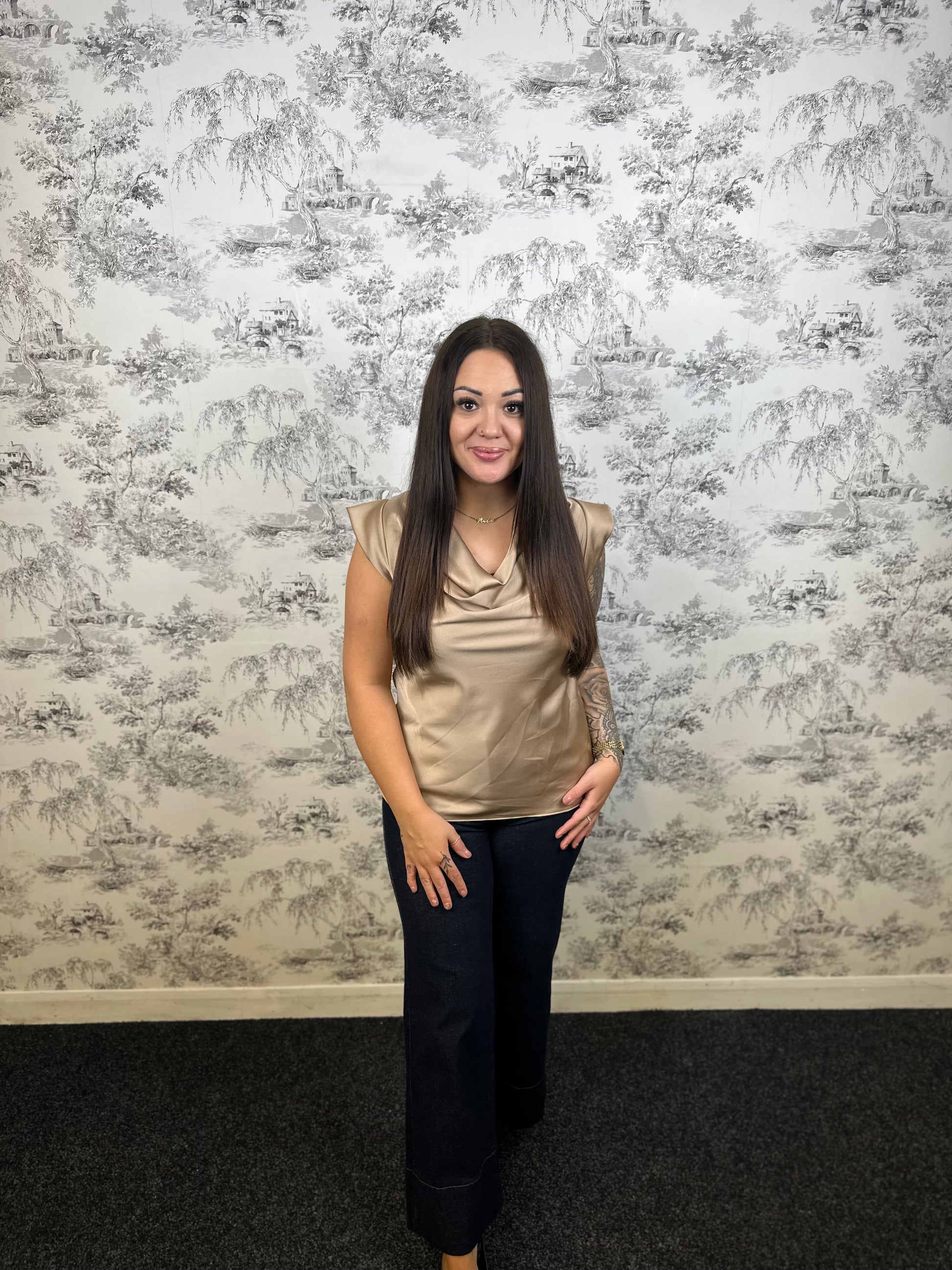 The LUXE TOP offers a luxurious touch to any wardrobe, available in both champagne and chocolate shades. Made with high-quality materials, this piece exudes sophistication and elegance. Elevate your style with this stunning top.