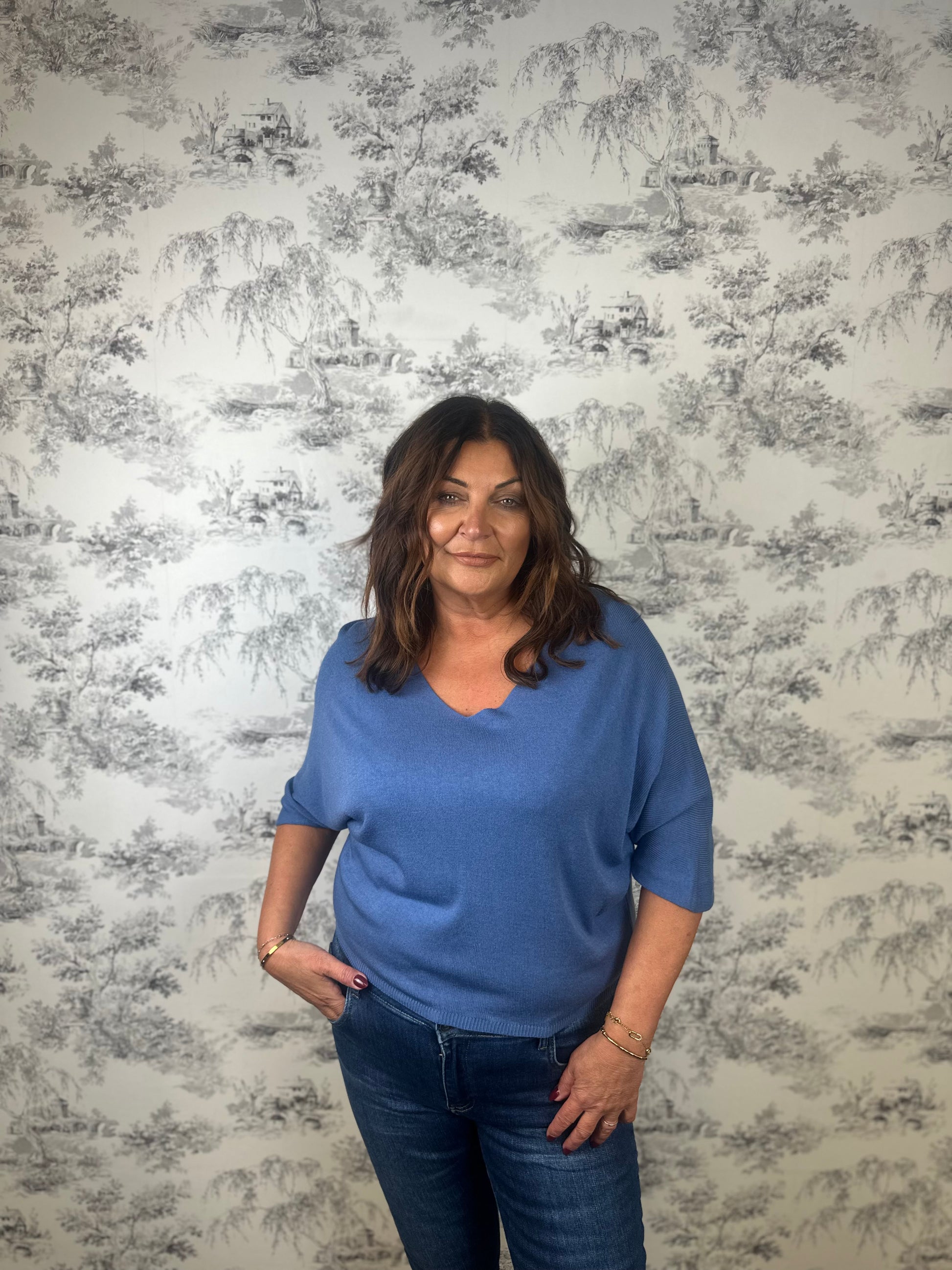 "The THEA KNIT is the perfect combination of style and comfort. Featuring a think knit design and half arm sleeves, it is both versatile and trendy. Stay cozy while looking effortlessly stylish with this must-have piece."