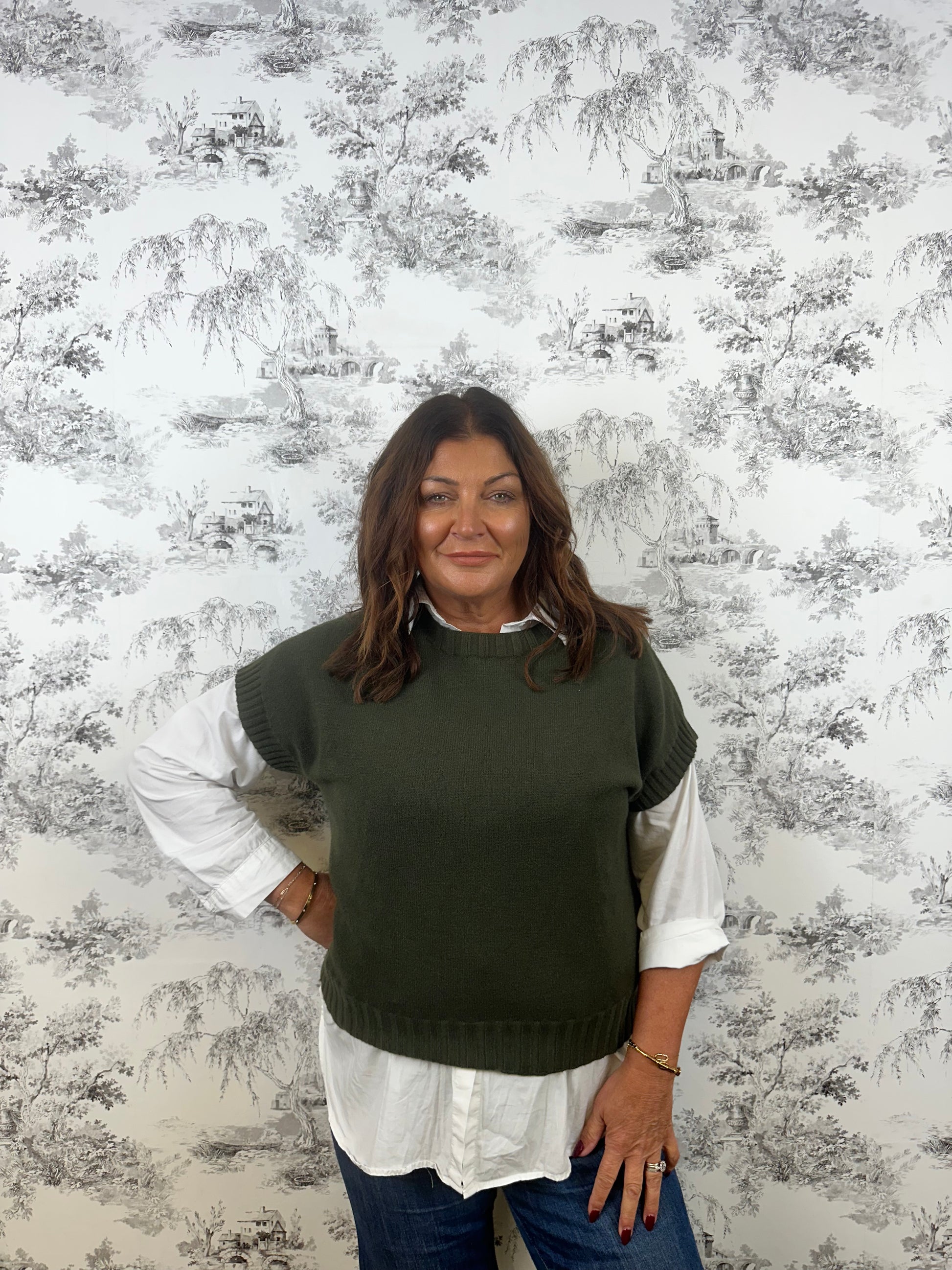 Introducing the Kelly Knit, the perfect addition to any wardrobe. This thin knit vest comes in a versatile one-size-fits-all, making it a great option for layering or wearing as a standalone piece. The lightweight design provides comfort and style while keeping you warm. One Size.